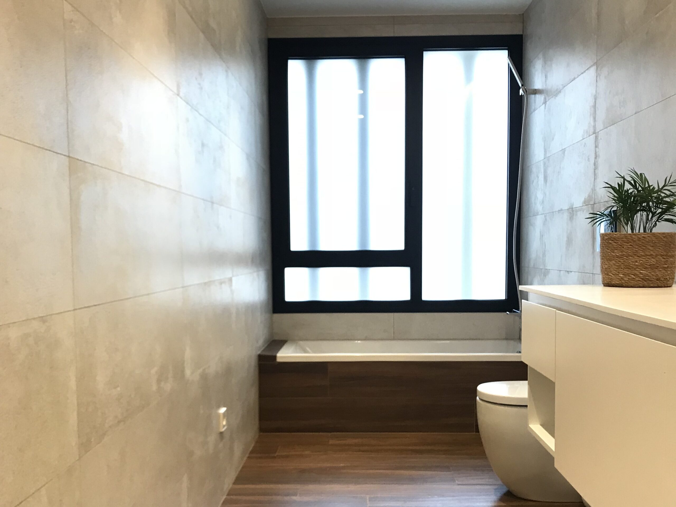 En esta reforma de baño vivienda en Valencia, hemos apostado por un diseño moderno y funcional, donde la continuidad visual y la sensación