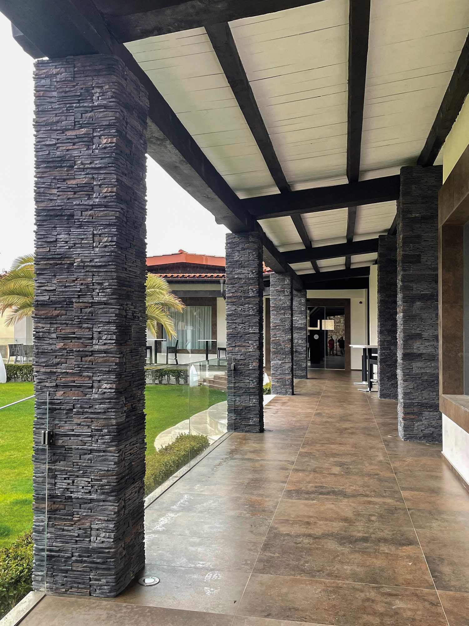 Su densidad más baja que la de la piedra natural lo convierte en una opción ideal para revestir estructuras ligeras, ofreciendo una combinación única de resistencia y ligereza. Además, se ofrecen piezas de esquina, molduras, columnas y otros complementos que garantizan un acabado perfecto en cada proyecto.